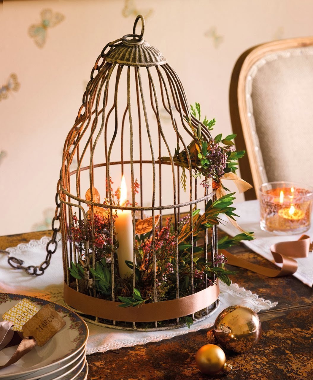 V přízemí se nachází obývací pokoj, kuchyň a jídelna. V obýváku momentálně dominuje vánoční jedlička ozdobena netradičními ozdobami, které prozrazují, že hlavním motivem jejich letošních Vánoc jsou ptáci. Vkusně sladěné vánoční prostírání je jako šité na míru tomuto prostoru. Jídelní stůl s nostalgickou patinou je nejdůležitějším centrem svátečního dění celé rodiny, proto se i jeho výzdobě věnuje patřičná pozornost.