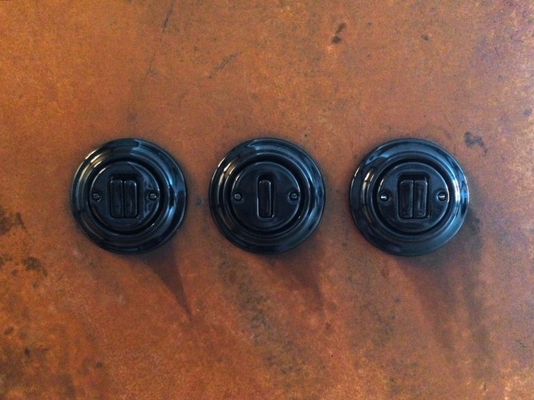 Vůči bílým pohledovým cihlám a rezavému i nerezovému plechu vytváří působivý kontrast elektrokompletace, pro kterou byl zvolen černý porcelán. Zajímavě v interiéru vypadají i četné kazetové dveře, které byly zrepasovány včetně původních dřevěných zárubní. Kování přitom bylo zvoleno patinované mosazné a tudíž korespondující s kováním oken. Naproti tomu v koupelně byly realizovány dveře se skrytou zárubní, skrytými panty a magnetickým zámkem. Co se týče vstupních dveří, ty jsou opatřeny bezpečnostním systémem z pancéřového plechu. Zajímavě vypadají i industriálně pojaté ocelo-skleněné dvoukřídlé dveře, jež oddělují hlavní obytný prostor od centrální haly. Tyto dveře byly vyrobeny na míru, a to z černě komaxitovaného ocelového jeklu, zasklívacích lišt, extra čirého zasklení a černých skrytých pantů. Dovření i zajištění otevřené pozice pak zajišťují neodymové magnety.
