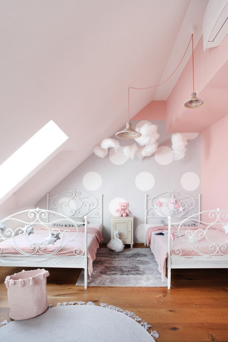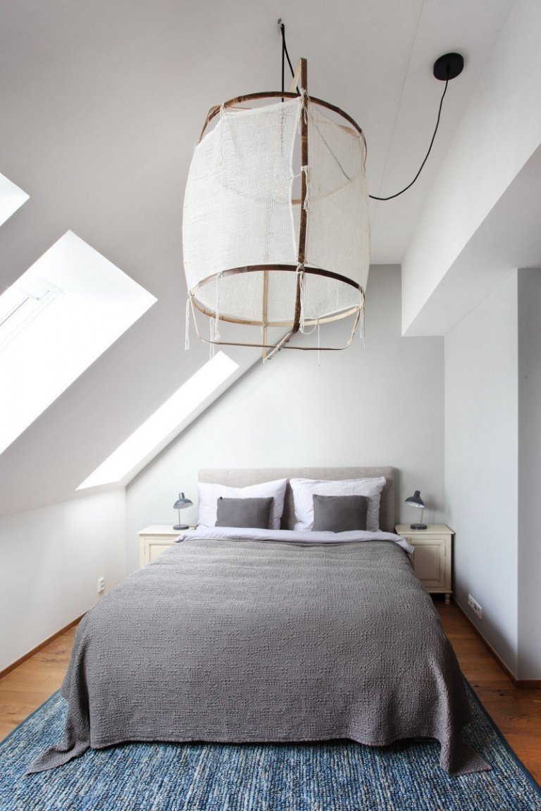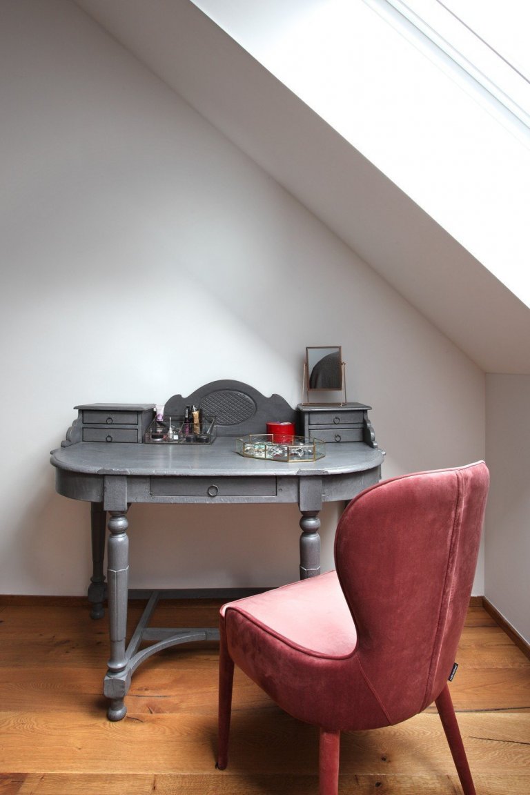 O tom, že si interiérový designeři v interiéru půdního bytu opravdu vyhráli, svědčí řada zdánlivých detailů. Těch je plný především dětský pokoj, který je splněným snem snad každé malé princezny. Vévodí mu kombinace bílé a růžové barvy. Vedle půvabných postelí s ozdobnými kovovými rámy zaujmou i nezvyklé nadýchané obláčky vznášející se u stropu. Právě dětský pokoj je úchvatnou designovou podívanou. To samé platí pro dětskou koupelnu, v níž se půvabné květinové vzory střídají s působivými metalickými prvky. Ložnice rodičů je naproti tomu jednoduchá a zaujme v ní především stylové osvětlení. Právě umělá svítidla hrají v interiéru také velmi důležitou roli. Napříč interiérem se tak táhnou zejména světla připomínající klasickou žárovku, která jsou v kurzu už po několik sezón. I ty umocňují industriální dojem tohoto půdního bytu. Tím ale jeho překvapení zdaleka nekončí. Na první pohled zde zaujmou také originální stolky, židle, křesla či v koupelně rodičů umístěná volně stojící umyvadla, které jsou imitací kovu. Na ozdobnou eleganci kovových rámů dětských postelí pak navazují židle na terase. Svádějí k odpočinku s výhledem do okolí ve dnech, kdy to počasí dovolí. V zimě zase skýtá příjemné útočiště místo v obývacím pokoji poblíž zabudovaného krbu.