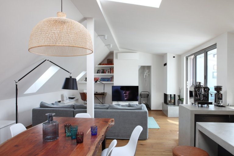Ze staré půdy tak vzniklo nádherné bydlení pro čtyřčlennou rodinu, ve kterém se industriální styl příjemně mísí s elegancí i romantikou. Půdní byt však nabízí nejen interiér plný designových kousků, ale i dostatek světla a inspirativních výhledů pro opravdu plnohodnotné bydlení.
