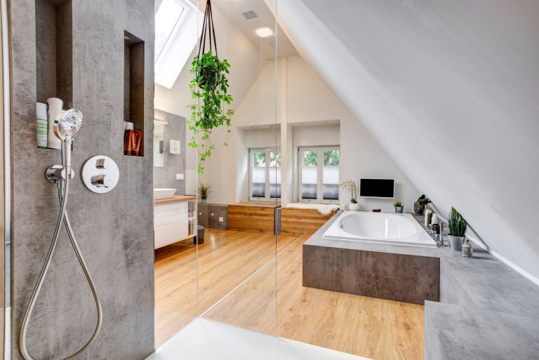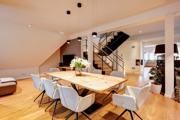 Podkroví v hrázděných domech mívají svůj půvab. Také v tomto případě vznikl pod střechou hrázděného domu velkolepý a jedinečný obytný prostor. Zaujímá plochu o velikosti 350 m2 a poskytuje majitelům exkluzivní bydlení. Zachovává si zvláštní charakter a vzpomínky na minulé časy, přitom ale vytváří moderní a reprezentativní prostor. Zaujme především svým vzdušným dojmem, prosvětlením a designem.