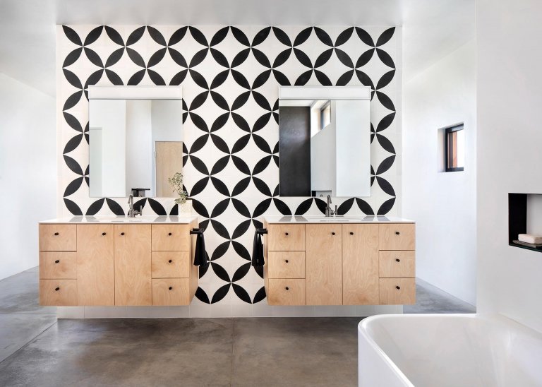 Uvnitř rezidence je patrná inspirace evropským designem. Důraz byl kladen především na jednoduché, čisté linie a omezenou, ale teplou paletu barev. Převahu bílé barvy doplňují odstíny béžové a šedé, nechybí ani dramatické černé akcenty. Bílé stěny a betonové podlahy - příjemné díky podlahovému vytápění spárovanému s rekuperací tepla - sjednocují estetiku interiéru.