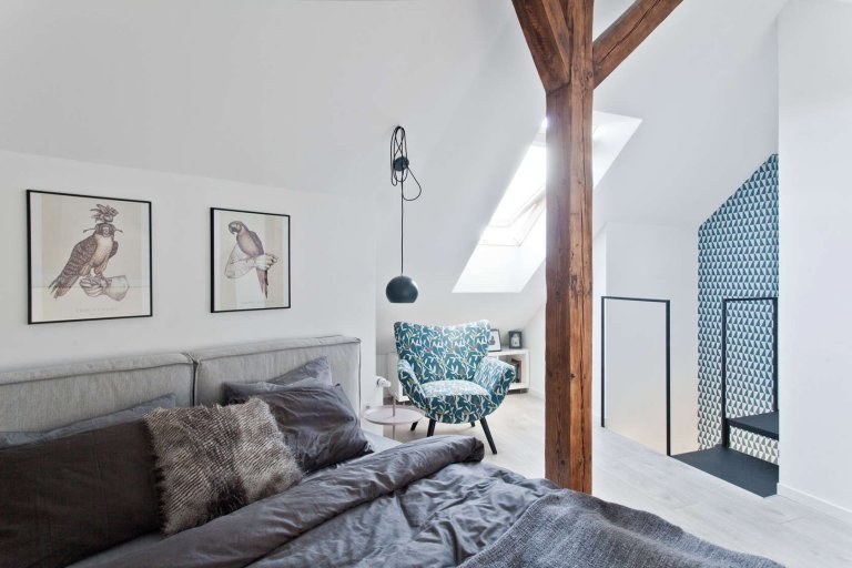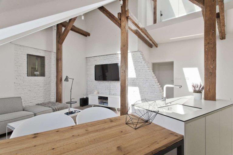 Interiér je zdařilým příkladem toho, jak se z nevyužitého podkrovního prostoru dá vybudovat luxusní mezonet pro příjemný městský život. Mladí architekti předvedli skutečně skvělou práci při rekonstrukci starého podkroví, nacházejícího se v polském městě Gliwice. Autory projektu jsou designeři architektonického studia Superpozycja Architekci