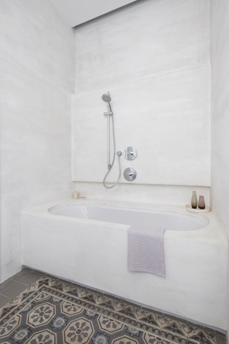 Dlaždice, jež se nacházely v předsíni, koupelně a na toaletě, byly opatrně odstraněny z původních betonových povrchů, vyčištěny a znovu použity. Starší okna a dveře byly zachovány, jen prošly obnovou, stejně jako původní parkety. Kuchyňský ostrůvek pak byl vyroben na zakázku.