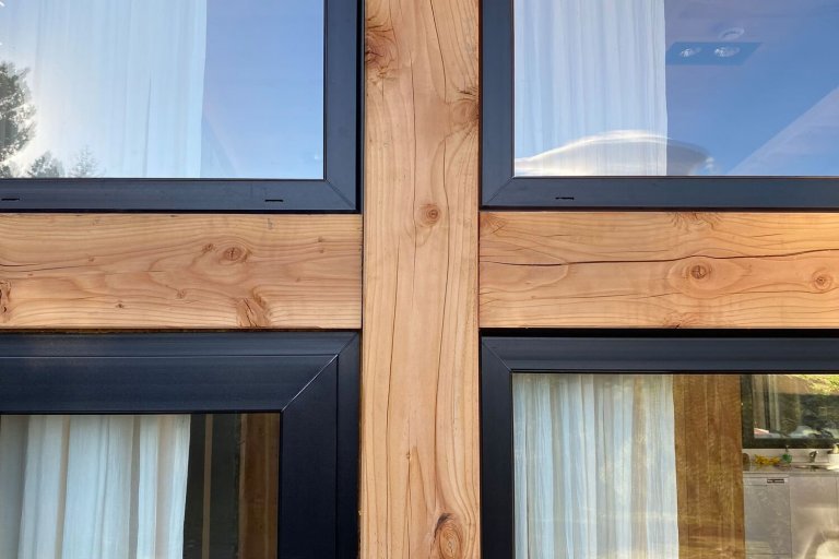 Dům byl postaven systémem suché výstavby. Stavba vznikla poměrně snadno a rychle, a to zejména díky propracovanosti a systematizaci kompozičních prvků, dříve tvarovaných v dílně. Architektonický plán byl jednoduchý. Ložnice jsou odděleny od společenských místností. Hlavní prostory domu jsou přitom orientovány tak, aby disponovaly co nejhezčími výhledy, zatímco servisní prostory našly místo v přední části obydlí. V celém domě přitom hraje hlavní roli dřevo. Snaží se do něj přinést útulnost a využívá k tomu všech svých možností. Krásy tohoto materiálu bylo použito na stěny, sloupy, trámy, podlahy a obklady v různých tvarech i texturách.
