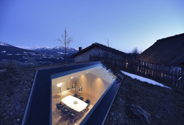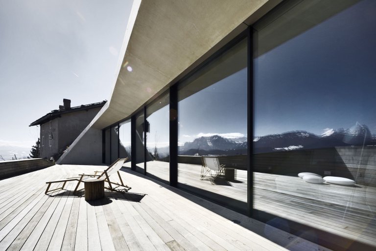 Dialog mezi starým a novým. Harmonický rozvoj lze dosáhnout nejen kopírováním a opakováním původních vzorů, používáním starých materiálů a postupů - ale i nezávislou a odvážnou autorskou výpovědí. Podmínkou je, že architekt "musí vědět". Dobré dílo vyžaduje poctivý návrh, provedení, domyšlený celku i detailů a rovněž "materiálovou věrnost a poctivost". Moderní řešení a materiály neomezují autorů v možnostech stavět ohleduplně k okolnímu prostředí. Autorem díla je mladý slovenský architekt ing. arch. Pavol Mikolajčák profesionálně působícího v oblasti Jižního Tyrolska.