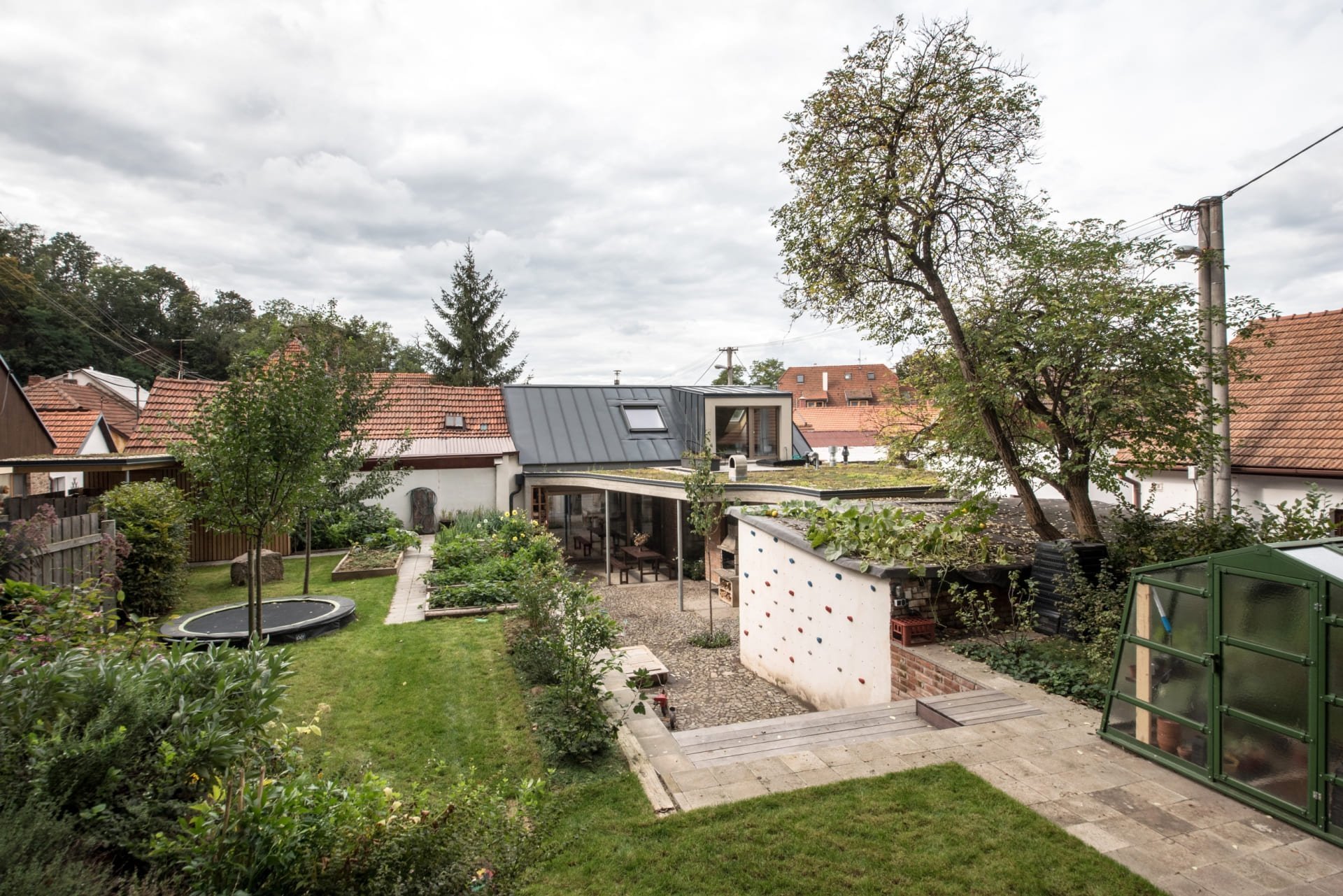 Kouzlo nejznámější brněnské dělnické kolonie učarovalo také architektům Radimovi a Haně Horákovým. Bydlení poblíž řeky a lesa si zamilovali, jak ale děti rostly, bylo třeba zauvažovat o rekonstrukci a přístavbě. Dispoziční řešení původního domu bylo kvůli letitému zastavování uliček mezi domy chaotické a zdaleka neodpovídalo představám o současném bydlení. Podlahy v jednotlivých místnostech byly v různé výšce, prostory byly tmavé a lokálně se objevovala vlhkost a s ní spojená plíseň. Cílem rekonstrukce tedy bylo celou dispozici vyčistit a objekt stavebně oddělit od okolních domů. Zároveň bylo třeba prosvětlit interiér domu a navýšit jeho užitnou plochu. V části stávajícího dvorku tak vznikla jednopodlažní přístavba.