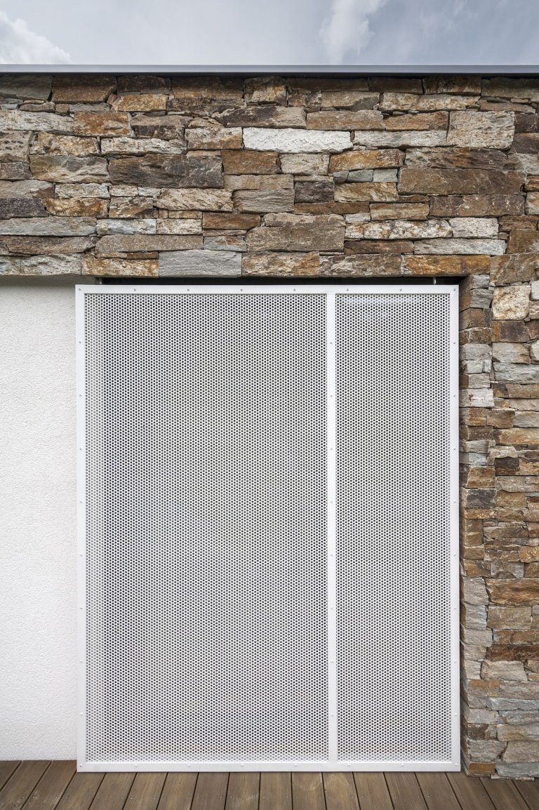 Dům měl být postaven tak, aby se minimalizovala jeho stopa (architekti chtěli dosáhnout dokonalého splynutí s přírodou), čehož se dosáhlo zapuštěním stavby do svahu, částečným překrytím terénem, ale i výběrem materiálů – stěny i hmoty, jež vystupují nad terén, jsou navrženy z lomového kamene, který je podobný tomu, který se na pozemku nachází ve velké míře.