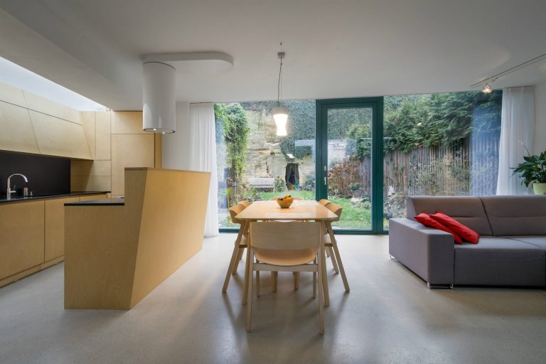 Oázou plnou zeleně zakončenou netradičním sklípkem oplývá přestavěný dům rozkládající se v jedné z pražských čtvrtí. Přestože na něj po stranách navazují další domy, nemusí se díky divoké přírodě kolem sebe cítit stěsnaně. Svobodomyslně si vymezuje svůj prostoj a dává najevo, že i dům v pražské čtvrti může být obklopen bujnou přírodou.