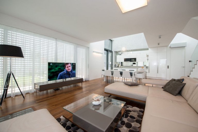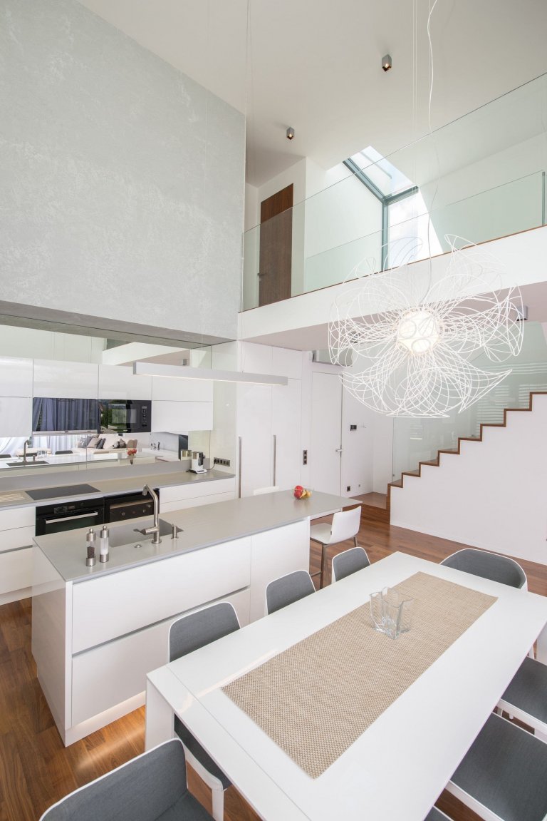 V Rači, klidnější městské části Bratislavy, se rozprostírá dům, který s přehledem splňuje nároky na vysoce komfortní moderní bydlení. Lemovaný záhony plnými menších stromků, keřů a květin ukrývá interiér, v němž bílá hraje prim. V duchu minimalismu a s důrazem na kvalitní materiály je opravdovým pohlazením po duši a příjemným útočištěm po náročném dni.
