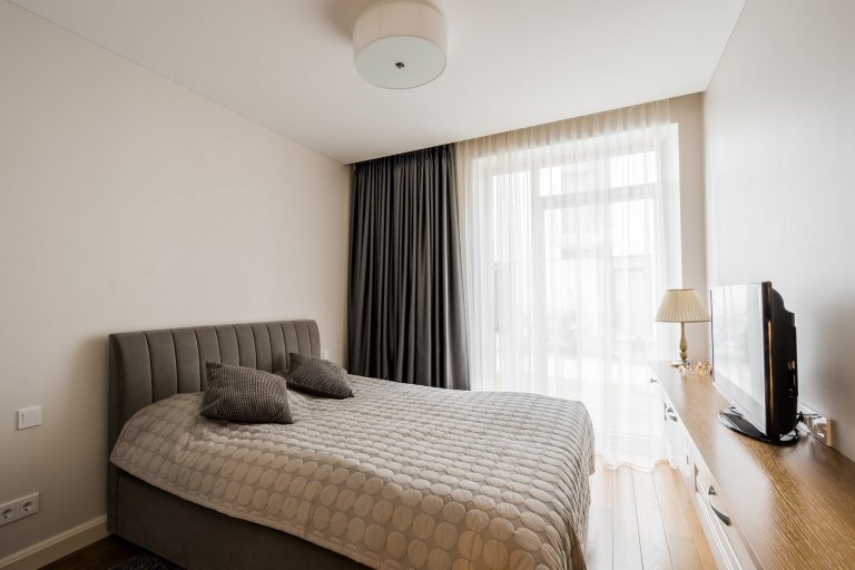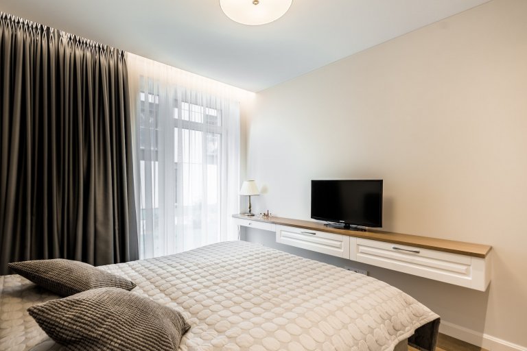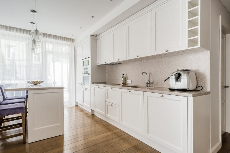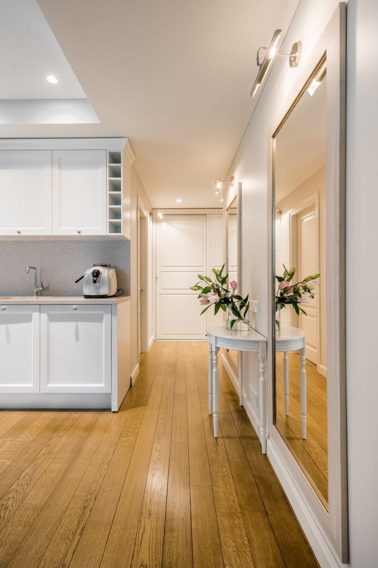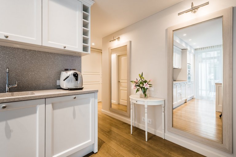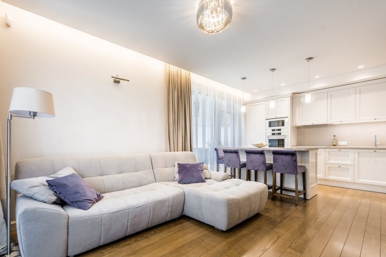 V hlavním městě Litvy, Vilniusu, vznikl interiér laděný do rustikálního stylu, s puncem luxusu. Kombinuje zdobné elegantní prvky s moderním vybavením a má svou jedinečnou atmosféru. Bíle lakované frézované dveře, zdobné lišty, nebo soustružené části nábytku, jsou typickými prvky rustikálního stylu.