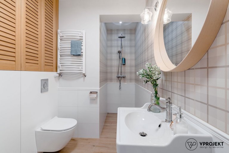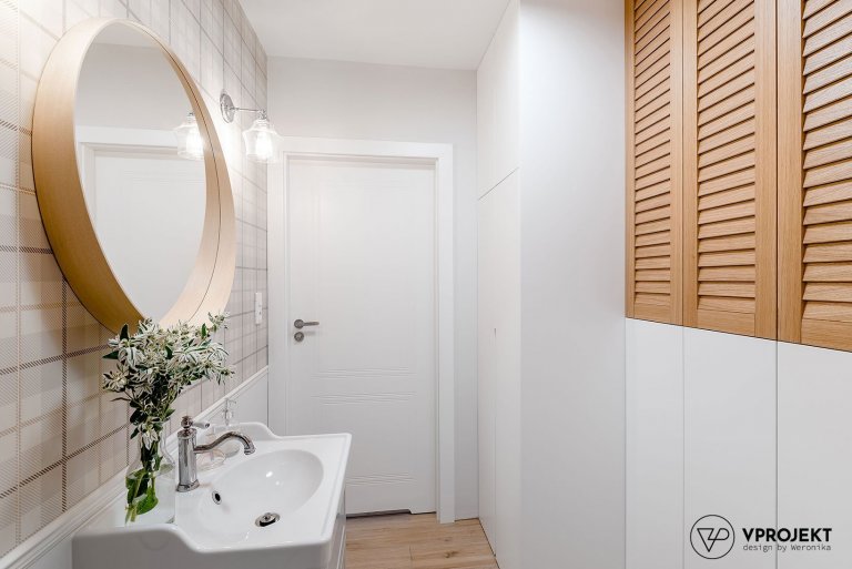Celý byt vyhlíží neskutečně harmonickým dojmem. Díky převaze bílé barvy a něze přírodních materiálů působí, jakoby opravdu pamatoval něco ze starých časů. Přitom ale splňuje náročné požadavky moderní doby a dává na odiv prvky, o kterých si naše babičky mohly nechat jenom zdát. Jedná se především o integrované úložné prostory, díky kterým může interiér volně dýchat. To platí zejména pro chodbu a ložnici, které díky vhodně řešeným skříním nemusí slevit z duchu minimalismu, jenž se ubírá napříč všemi místnostmi. Právě ložnice je přitom jedinou, která dává přednost tmavším barvám. Přesto si však i ona ponechává výrazně elegantní styl. Praktickou vychytávkou pro děti i dospělé je designová tabule prakticky umístěná pod lampou v kuchyni, na kterou lze napsat nákup i milý uvítací vzkaz.