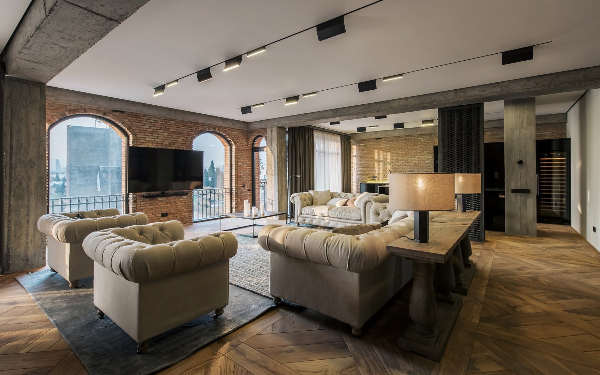 Tbilisi je nádherné město obklopené horami a s výhledem na řeku Kura. Místní prostředí a jeho povaha architekty silně ovlivňovala při vytváření tohoto interiéru, kde použili prvky související s rustikálním stylem. Právě tento styl je v posledních letech velmi populární, jelikož v sobě kombinuje dvě námi oblíbené věci: jednoduchost venkovského šarmu a moderní estetické cítění.