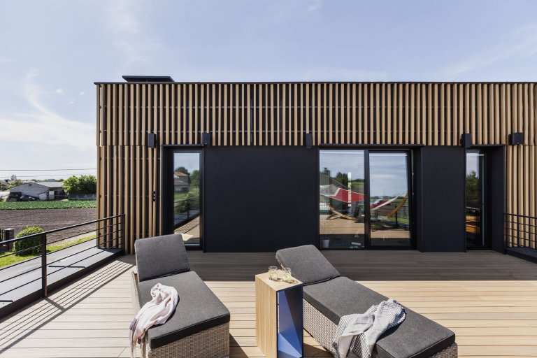 Ačkoliv je konečný výsledek realizace opravdu krásný, cesta k němu nebyla nejjednodušší. Mladý pár, který si chtěl nechat postavit prostorný rodinný dům, disponoval krásným pozemkem v Polsku, který byl bohužel příliš bažinatý. Proto bylo třeba půdu důkladně odvodnit, a získat tak plochu vhodnou pro stavbu domu. Druhým kritériem byla výstavba chodníčku pro drobná zvířata, která přes tento pozemek migrují do okolní přírody. Celého projektu se ujalo architektonické studio Metaforma, které po celou dobu navrhování i při samotné stavbě úzce spolupracovalo s přáními majitelů. Díky této vzájemné důvěře byli architekti schopni rychle reagovat na připomínky klientů a také jim ukázat, jak bydlet nejen přírodně, ale i moderně.