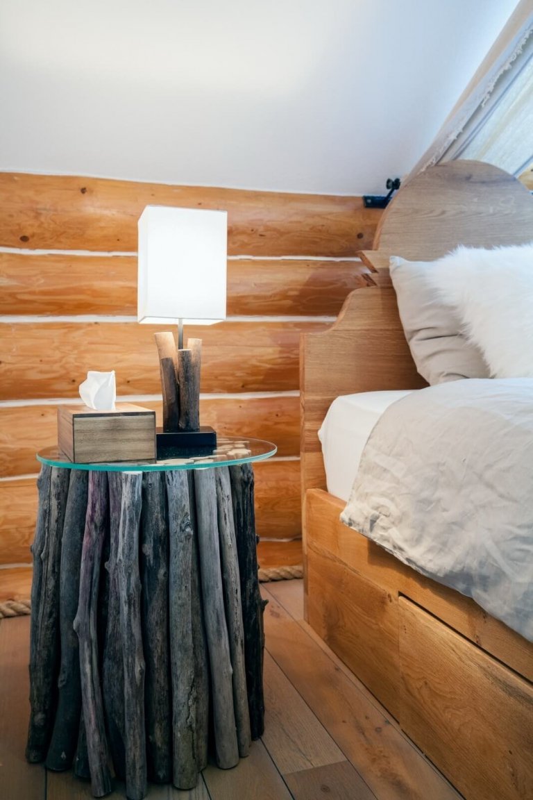 Díky povaze materiálu, který je přírodní, jde o eko-friendly stavby, které jsou vhodné pro ekologicky žijící jedince. V některých ohledech jsou srubové domy lepší než zděné, navíc se jim díky moderním technologiím dnešní doby plně vyrovnají. Tvůrcem celého interiéru je slovenská interiérová designérka Odette Kmeť Fedorová, která tvoří pod značkou Odette Design studio. Její tvorba na tomto srubu se zaměřuje na romanticky vypadající provensálský styl. Celý srub je velmi prostorný, protože je stavěn na patro. Okolo se nachází velká zahrada a příroda, což umožňuje skvělou šanci k odpočinku a soukromí, což je jeden z hlavních důvodů, proč se lidé v dnešní době opět vrací do přírody.