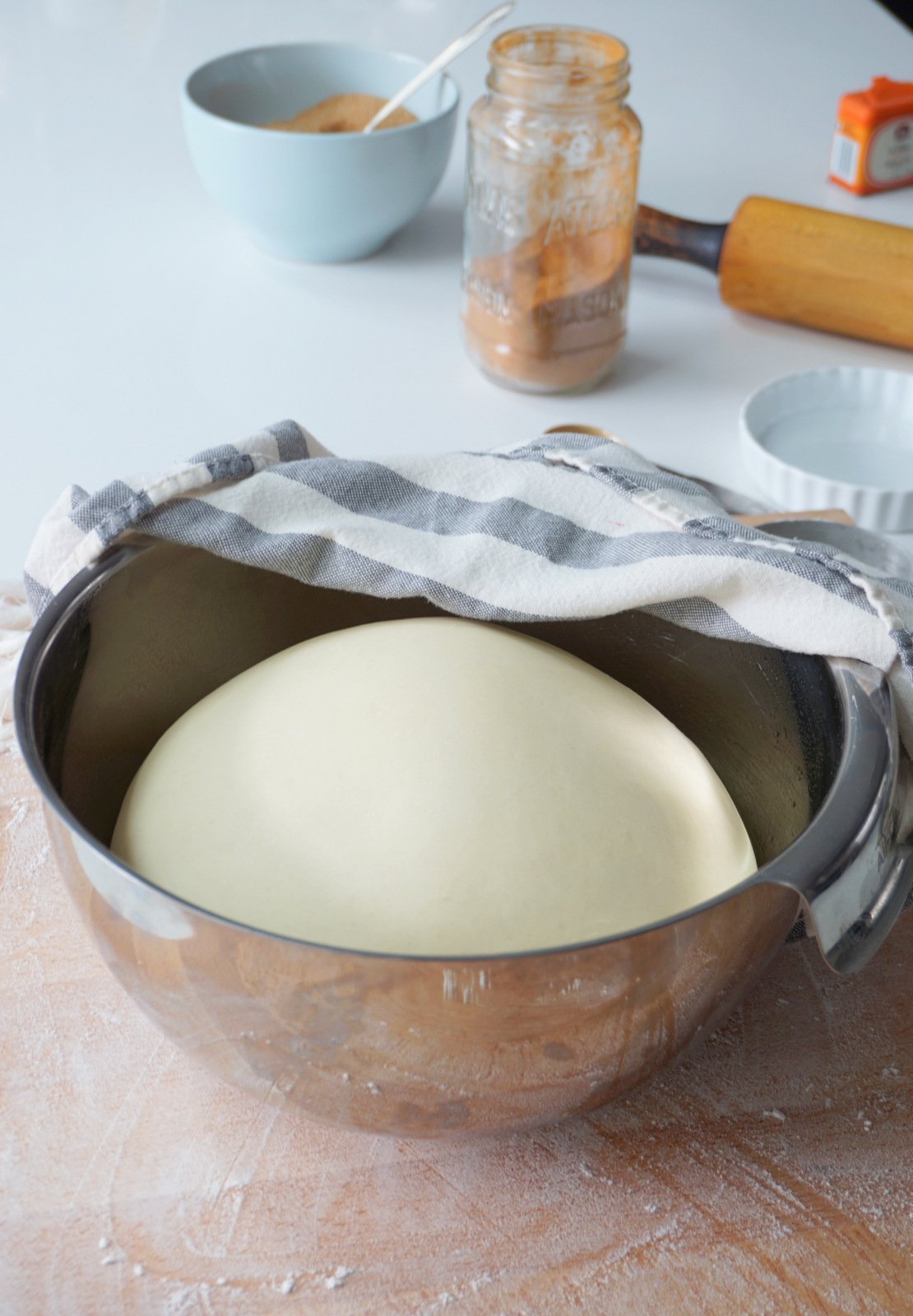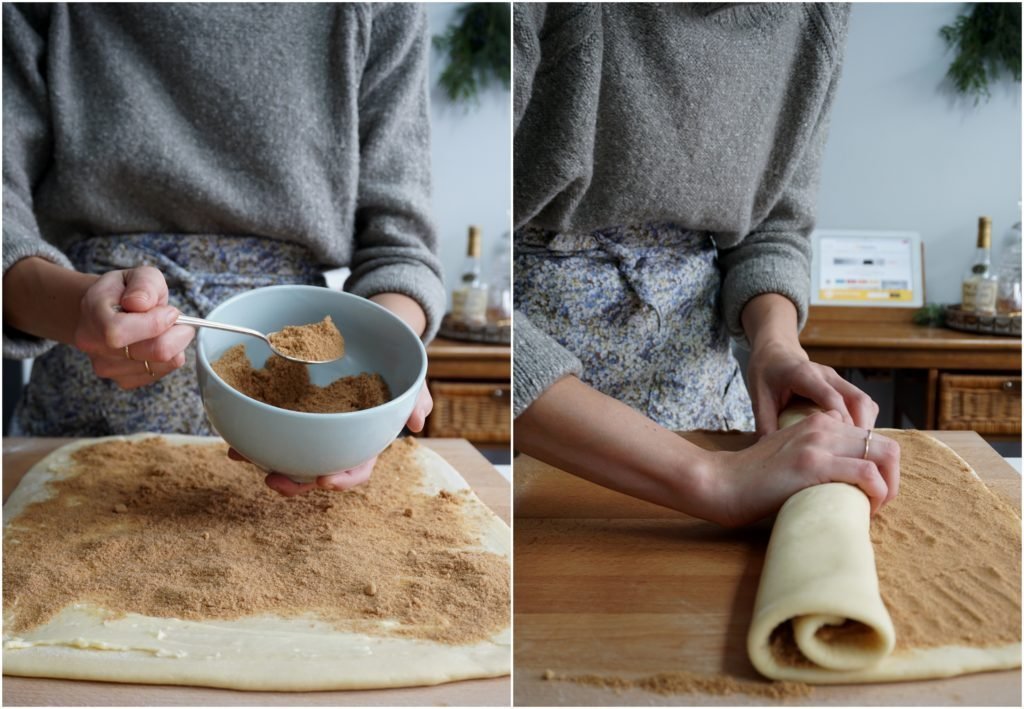 Připravíme si větší mísu, do které odvážíme mouku. Do přichystané mouky, promíchané se solí, vlijeme hotový kvásek a přidáme zbylé suroviny. Vše dobře zapracujeme a uhněteme tužší těsto. Poté těsto necháme odležet zhruba hodinu, než zdvojnásobí svůj objem. Připravené těsto rozválíme a potřeme změklým máslem, posypeme cukrem se skořicí a muškátovým oříškem. Podle chuti můžeme upravit množství cukru a přidat můžeme zrníčka z vanilkového lusku, nebo rozdrcený hřebíček.
