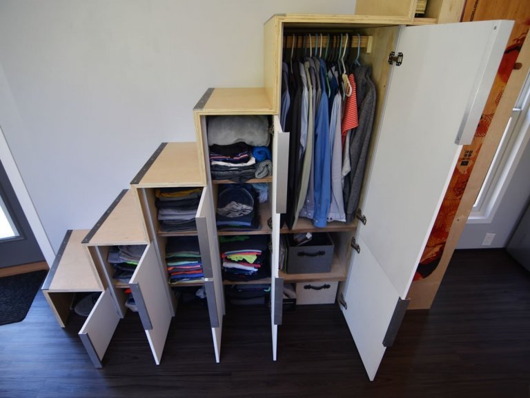 Mladý americký pár si vlastními silami postavili tento mobilní domek s názvem Shed. Pracovali na něm po víkendech necelých 14 měsíců. O tom že dokázali využít každý centimetr čtvereční, není pochyb. Kromě ložnice, obývacího pokoje, malinkaté koupelny i prostorné kuchyně zde můžete najít komoru, ve které mají majitelé uložené sportovní i turistické vybavení. Domek je vybaven velkými prosklenými okny a dveřmi, které vevnitř zajišťují dostatek světla a disponují žaluziemi pro zajištění soukromí.