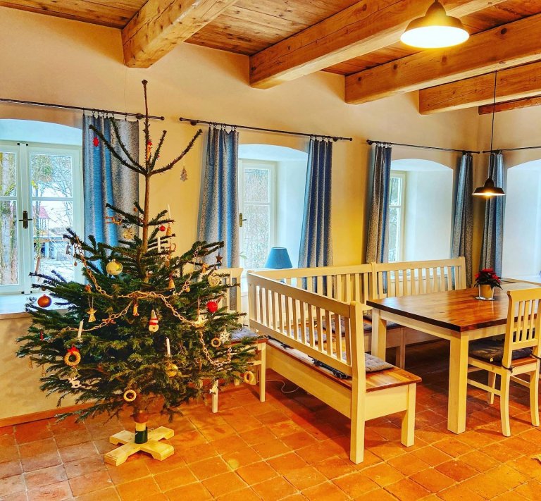 Srdcem chalupy je sednice, hlavní prostor, kde se dříve rodina scházela a mohla spolu pobývat. V této sklářské chaloupce zůstal tento zvyk zachován. Snad proto ve stavení nenajdete televizi, jelikož ta odvádí členy domácnosti od vzájemné pozornosti, natož pak od přírodních krás. Přitom se stačí kochat pohledem na dřevěné stropní trámy, velký dřevěný jídelní stůl či okna s bílými rámy, která se s nadcházejícím večerem zahalí do jemně modrých závěsů. Sednice je zkrátka potěchou pro oko i duši. A pokud stůl ozdobí místa čerstvě napečených koláčů a voňavá kytice růží, není snad co víc si ještě přát.