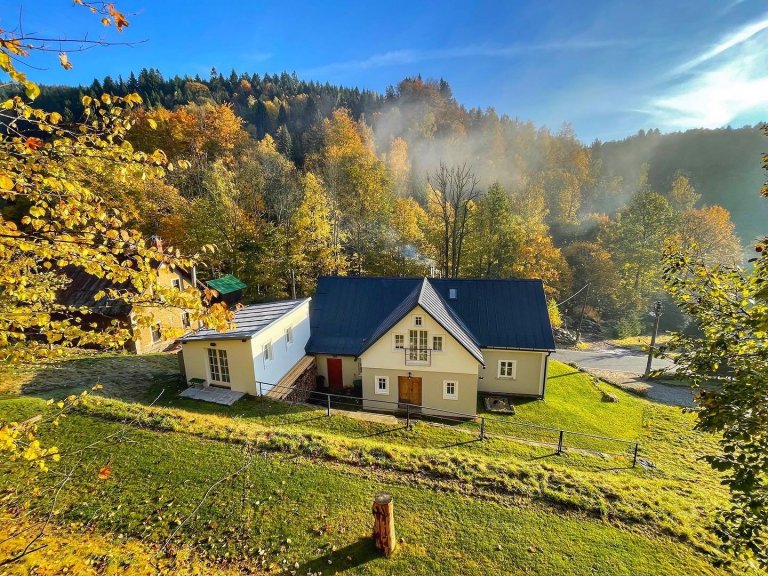 Chalupa Sklářská, jak se jí teď říká, odkazuje na rodinu sklářů, která ji obývala po více než sto let, a to už od roku 1876. Je tak pozoruhodné, že její současní majitelé, jsou teprve jejími druhými obyvateli. Sklářská tradice je v této chalupě patrná i v současné době. Noví majitelé totiž při nedávné rekonstrukci nechtěli tomuto stavení ubrat na autentičnosti a historii, s níž se pojí. I teď tu tak můžete najít celou řadu řemeslných prvků, které se po zdejších sklářích zachovaly. Chalupa tak prošla kompletní, ale citlivou rekonstrukcí s důrazem na tradiční architekturu, původní použité materiály a komfort dnešní doby. Chalupu nově doprovází velkoryse zařízená wellness zóna s finskou saunou a relaxační místností s výhledem na les. Milovníci jógy zase ocení přilehlou dřevěnou terasu orientovanou na východ a s výhledem do údolí.