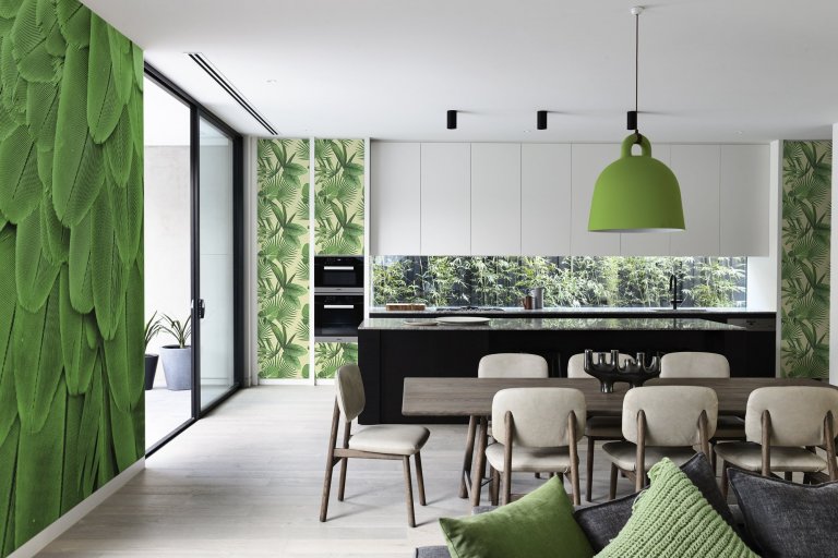 Příští rok se nese v zeleném duchu. Barvou roku 2018 je vyhlášena svěží zelená nazvaná greenery. Znovu se vrací květinové vzory, které budou zdobit polštáře, čalounění a ubrusy. Zelené stěny a doplňky s přírodními motivy jsou v kurzu. Exotika se nám také nevyhne. Palmy v květináčích, nebo bílé stěny pokryté tapetami s motivem džungle, nebo květinovou grafikou a originální malby na zdech. V kuchyni si zas najdeme místo pro květináče s bylinkami. Zajímavým fenoménem se staly zavěšené rostliny s kořeny obalenými mechem, jménem Kokedama. Celé živé rostoucí stěny, nebo závěsné systémy jsou nyní také ve velké oblibě.