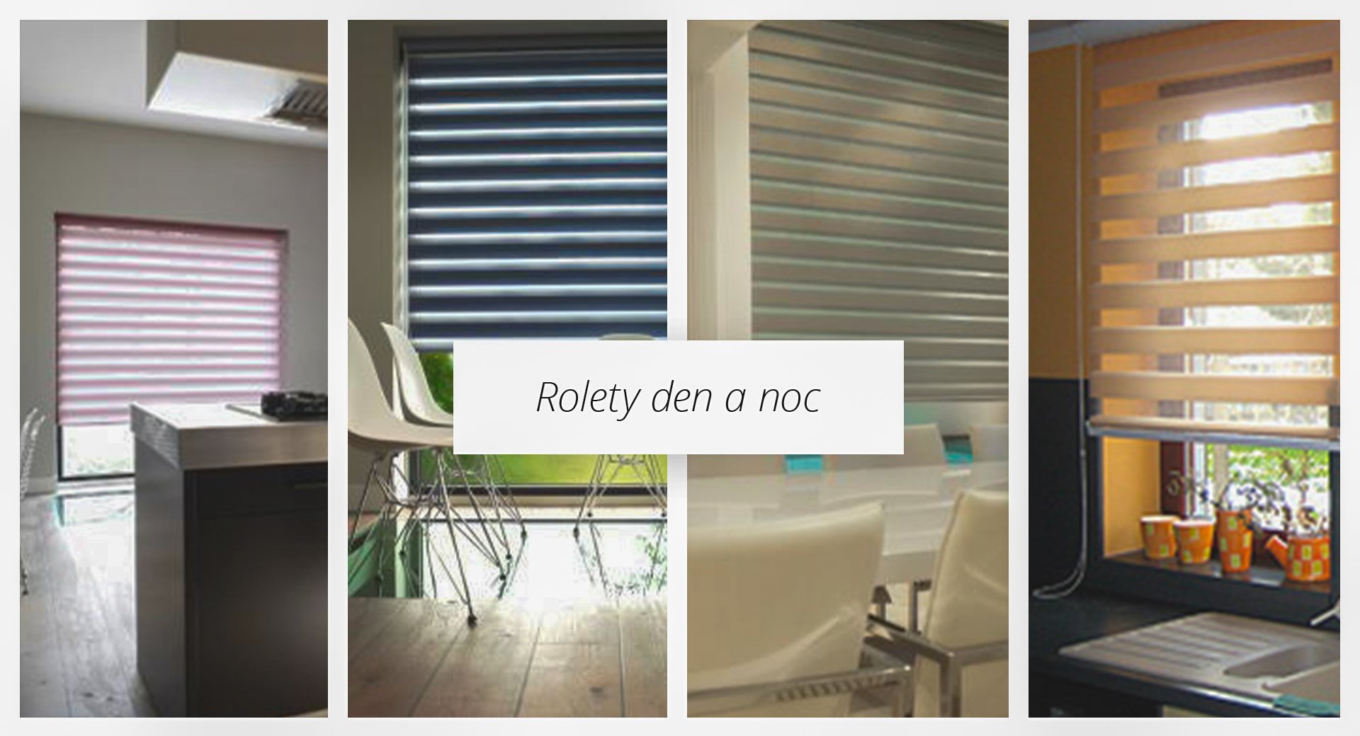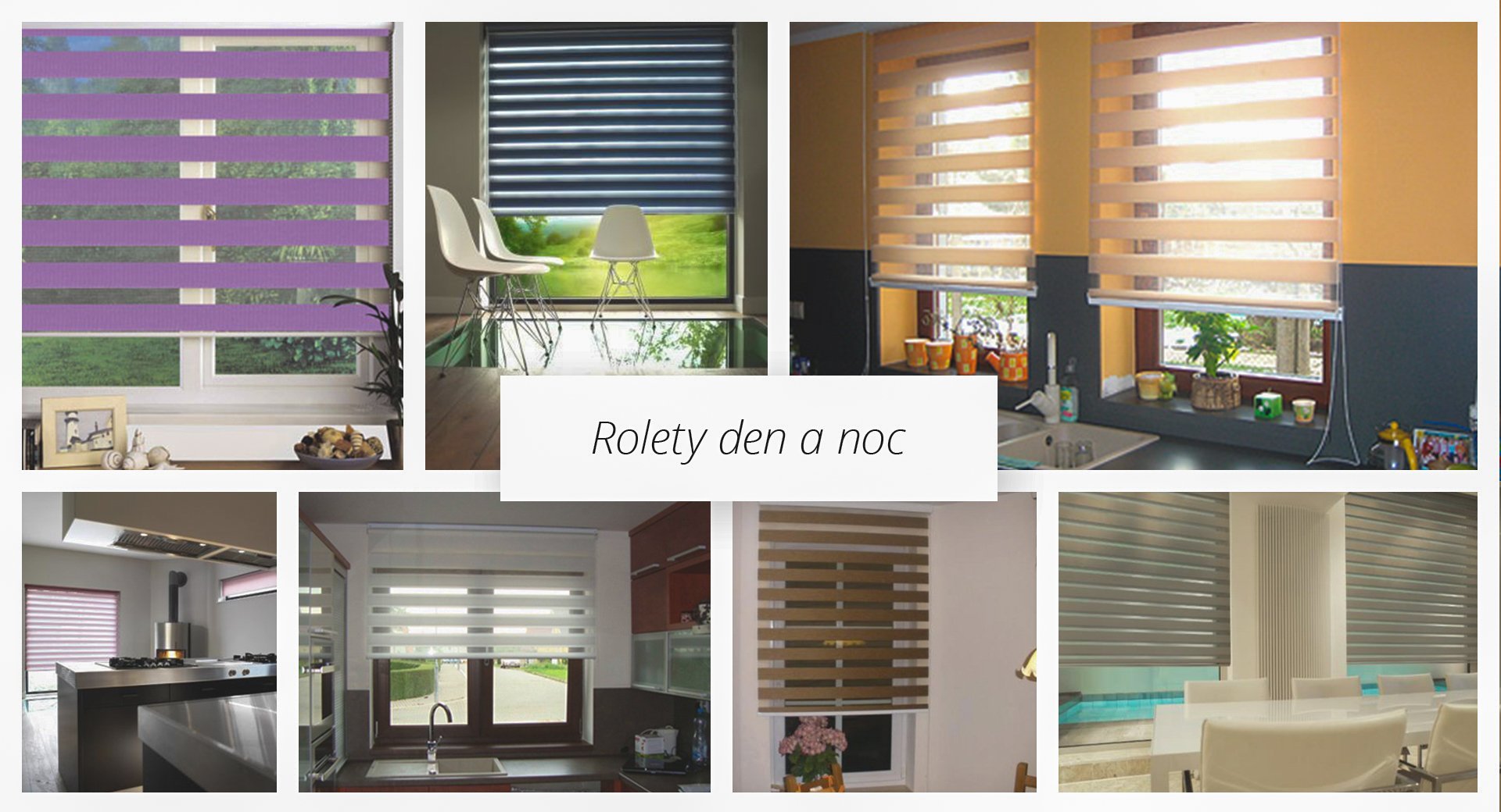 Střídáním dvou látek si můžete regulovat světlo od 50% do 100% zastínění. Rolety DEN/NOC nemají vodící lišty a dají se namontovat na klipy na okno, špaletu, zeď i strop. Zastíní plochu do velikosti 5,5 m².  Často jsou vidět v kuchyních, ložnicích a dětských pokojích. Pokud byste tento typ zastínění potřebovali pro menší okna, doporučujeme zvolit rolety DEN/NOC mini.