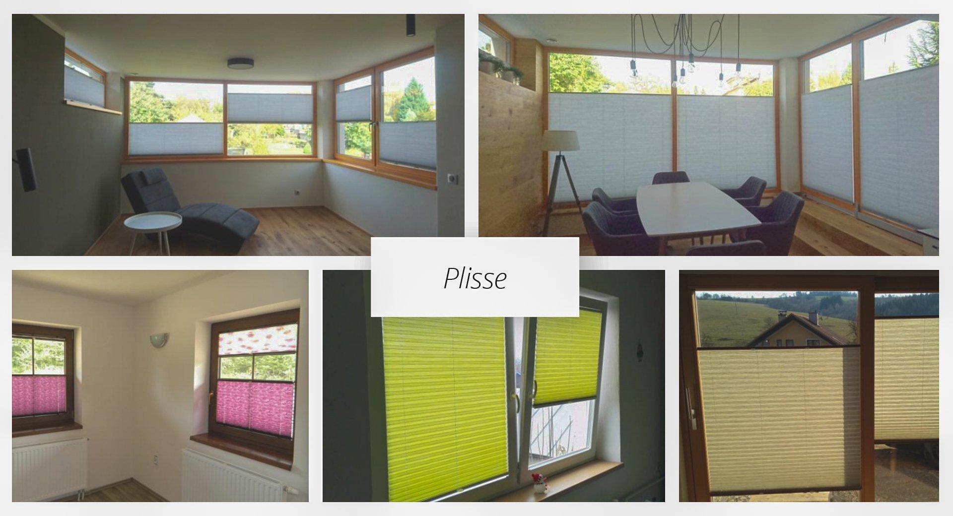 Kombinuje v sobě rolety a žaluzie. Můžete si variabilně zakrývat plochu oken z dolní či horní strany, případně i od středu okna. Na jednu řadu vodících šňůr se mohou upevnit i 4 lišty, což v praxi znamená, že můžete mít světlejší textilii na denní zastínění a pak zatemňovací látku na noc. Plisse jsou oblíbené do ložnic, kuchyní i obývacích pokojů, kde díky zatemnění poskytnou úplné soukromí. Díky absenci kastlíků a krytek vypadají velmi elegantně.
