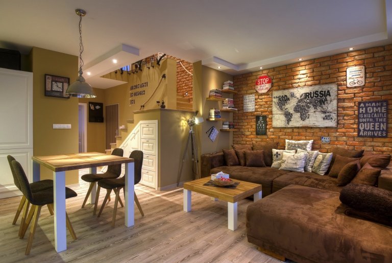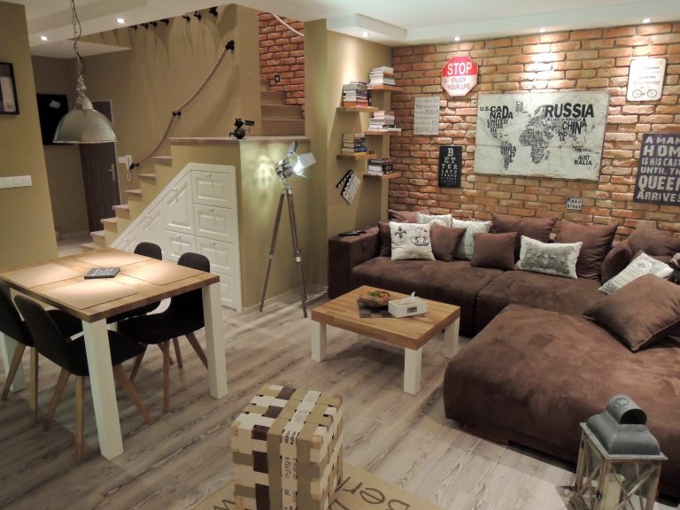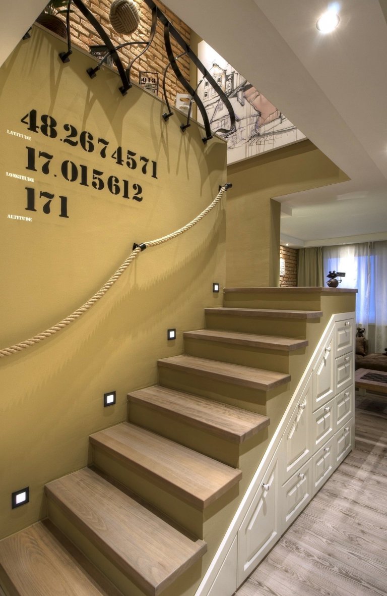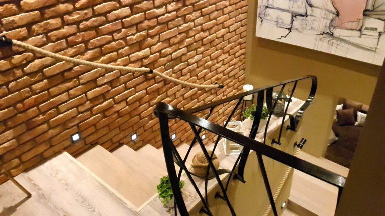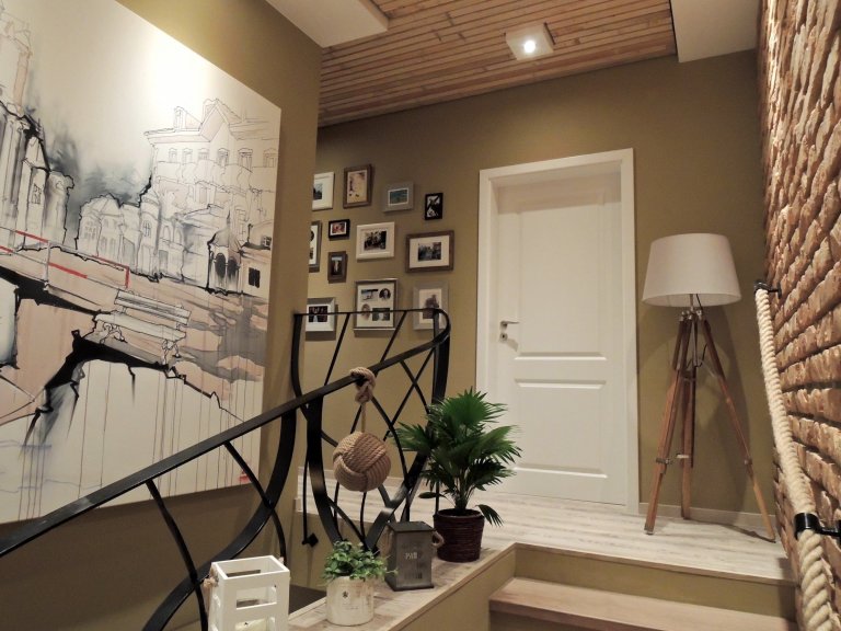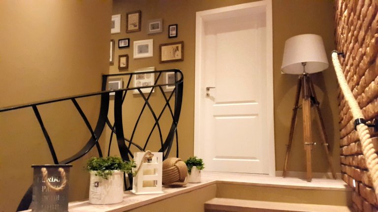 Celý byt působí opravdu příjemným dojmem. Je velmi útulný a na pocit hřejivý. Všechny prvky, dekorace, ale i nábytek k sobě dokonale ladí a fungují jako jeden celek. Nechybí zde ani praktické a funkční věci, jako je například botník nad schodištěm, svítidla s regulací intenzity záření (všechna zabarvena do příjemně hřejivé žluté barvy, žádná bílá světla), ale ani magnetická nástěnka skrývající nevzhlednou rozvodovou skříňku.