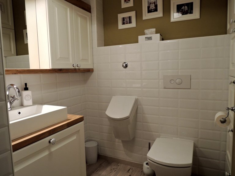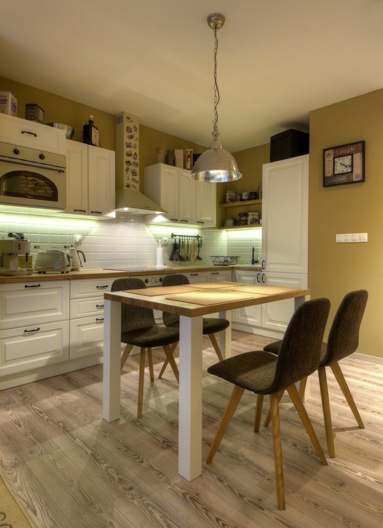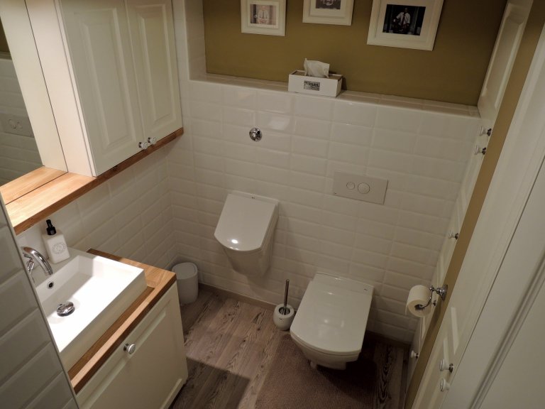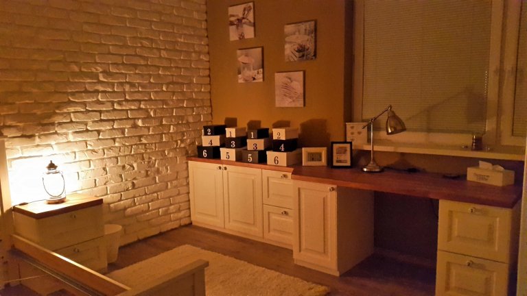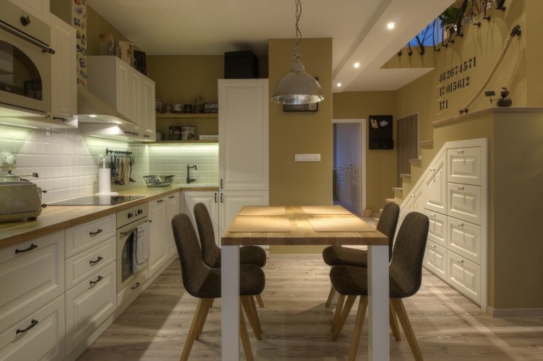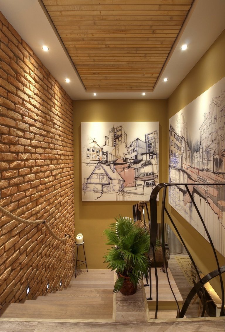 Celý byt působí opravdu příjemným dojmem. Je velmi útulný a na pocit hřejivý. Všechny prvky, dekorace, ale i nábytek k sobě dokonale ladí a fungují jako jeden celek. Nechybí zde ani praktické a funkční věci, jako je například botník nad schodištěm, svítidla s regulací intenzity záření (všechna zabarvena do příjemně hřejivé žluté barvy, žádná bílá světla), ale ani magnetická nástěnka skrývající nevzhlednou rozvodovou skříňku.