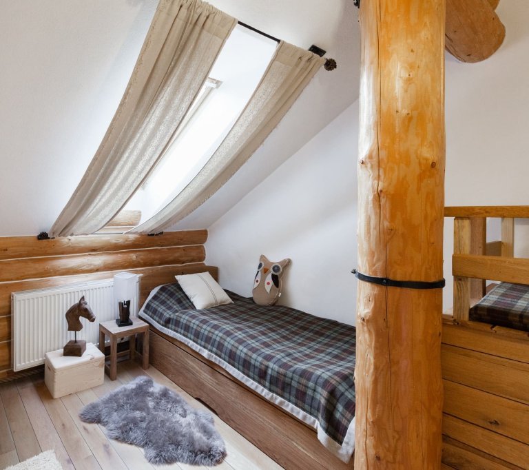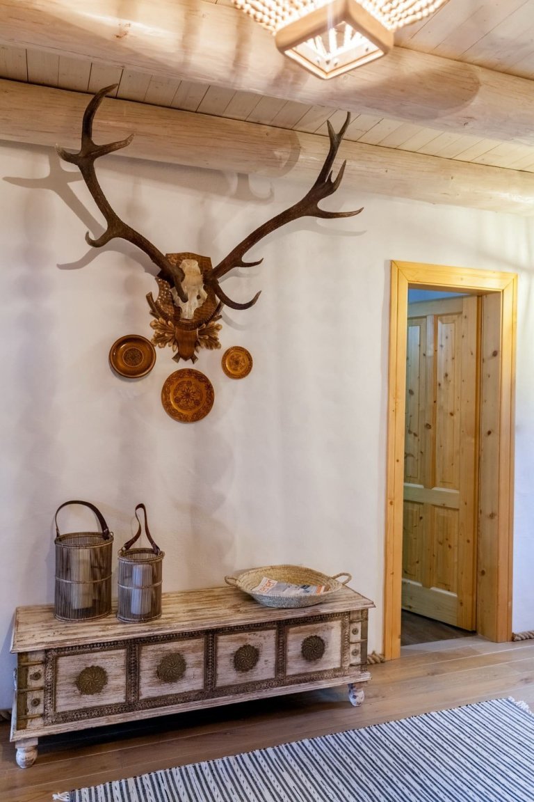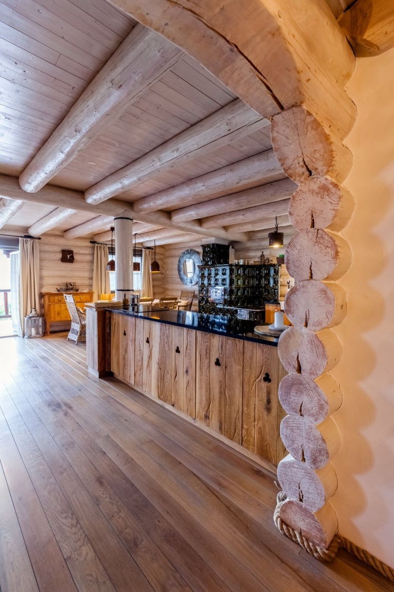 Interiér srubu na Slovensku se tedy oprostil od poněkud nemístného provensálského stylu, aby dal šanci tomu, který si s horskou krajinou rozumí mnohem více.