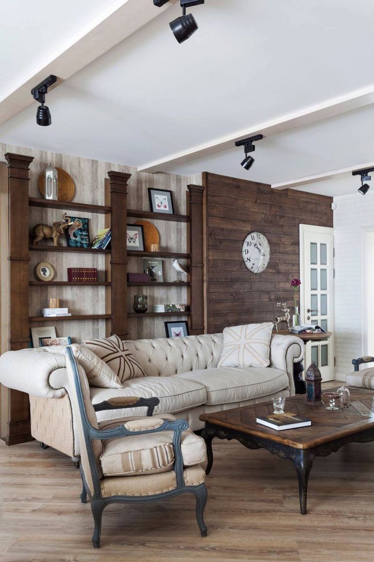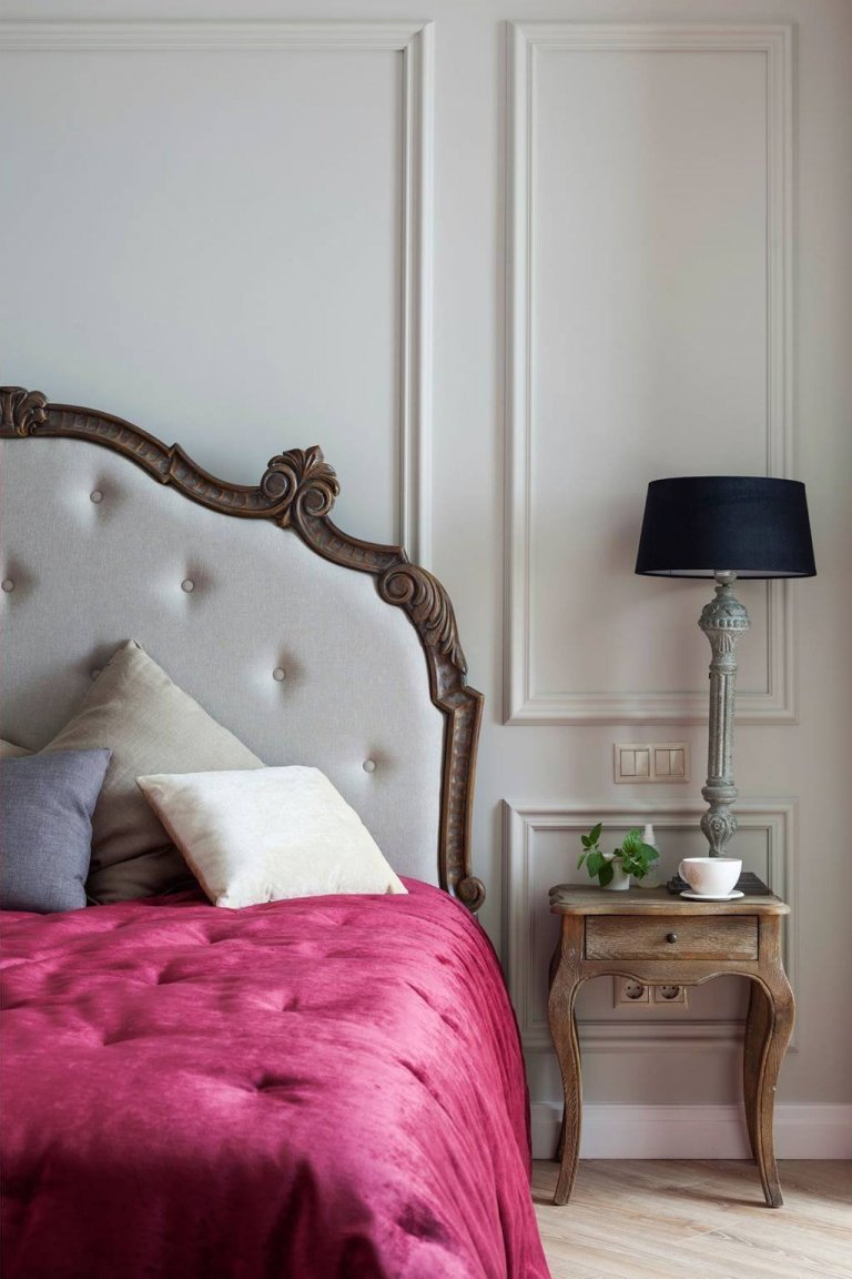 Zatímco jsou některé místnosti v tomto půvabném bytě laděny do jemného provensálského stylu, ostatní předvádějí okázalý historický styl. Přesto jako by si však tyto dva styly vždy navzájem propůjčily některý ze svých prvků. Zatímco tak bílá kuchyně se šedými obklady i polstrováním židlí působí převážně provensálsky, ukazuje na odiv i historický lustr nebo zdobenou nohu stolu. Také židle jako by si snad designéři vypůjčili přímo ze zámku. Naproti tomu je zase možné v druhé koupelně nebo obývacím pokoji v historickém duchu najít řadu romantických prvků.