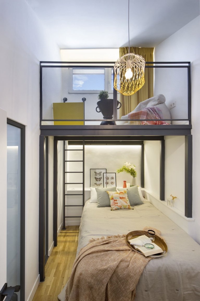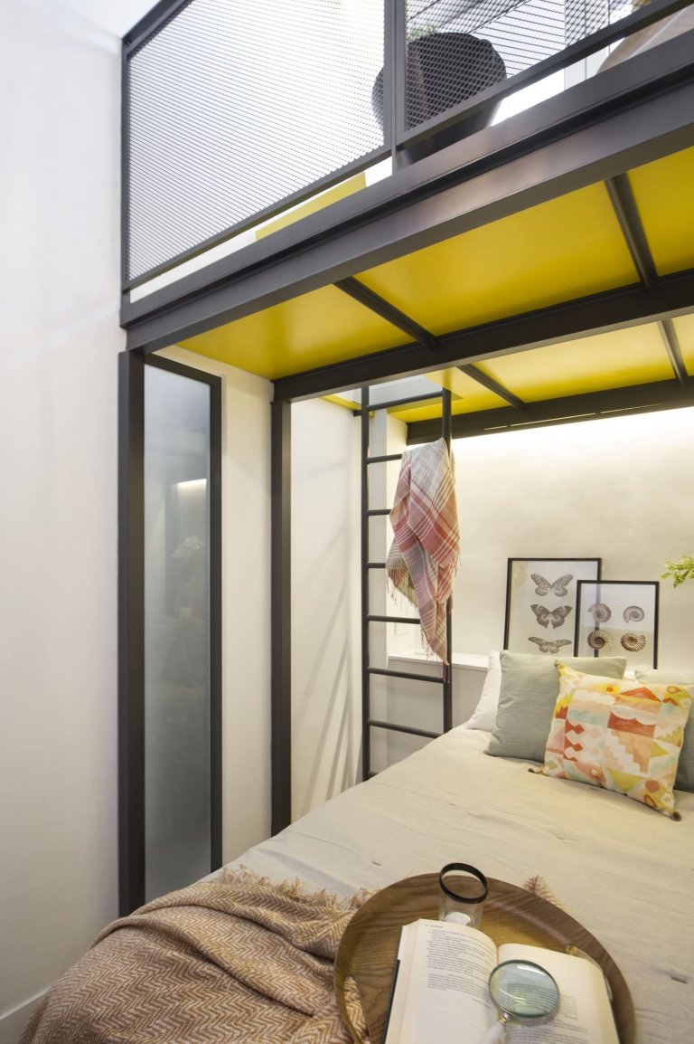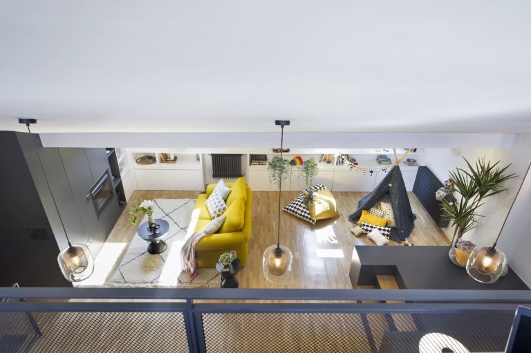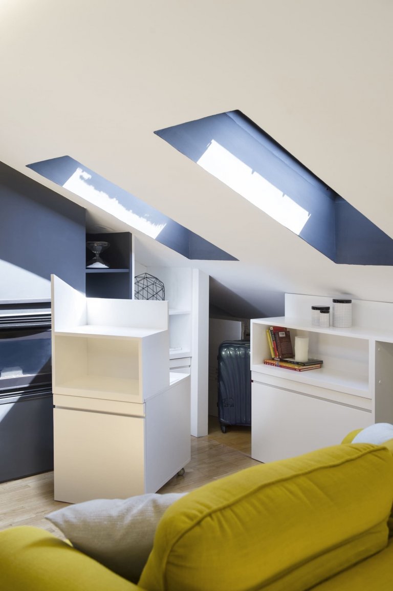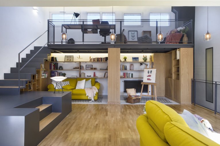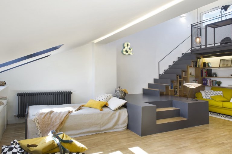 Půdní prostor s velkým potenciálem využívali madridští majitelé zprvu jako skladiště, díky architektům ze studia Egue y Seta však nově získali příjemných 97 m² plochy, která se proměnila v plnohodnotnou část domácnosti. Ta zaujme nejen bohatě zásobenou knihovnou, ale i svěžími akcenty jasně žluté barvy.