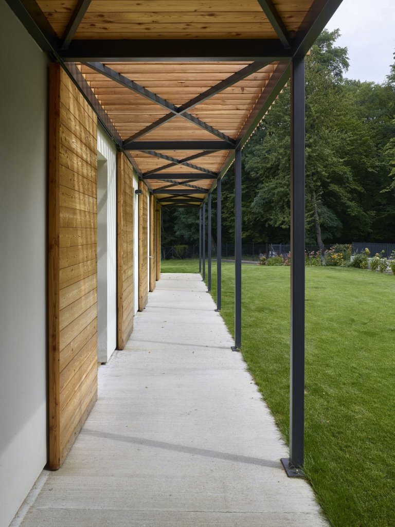 Na lidovou architekturu neodkazuje pouze novodobá dřevěná stodola napojená na cihlový dům, ale také další specifický prvek lidové architektury. Ten se slovensky označuje jako gánok a představuje dlouhou chodbu vedoucí podél domu, která vede na terasu. Tato chodba neboli zápraží se ve slovenské lidové architektuře objevuje už po staletí, nyní tak máme možnost vidět tento lidový prvek v docela novém kabátě. Nejenže zde vytváří příjemnou vstupní zónu, ale zároveň místo k posezení ve stínu pod pergolou.