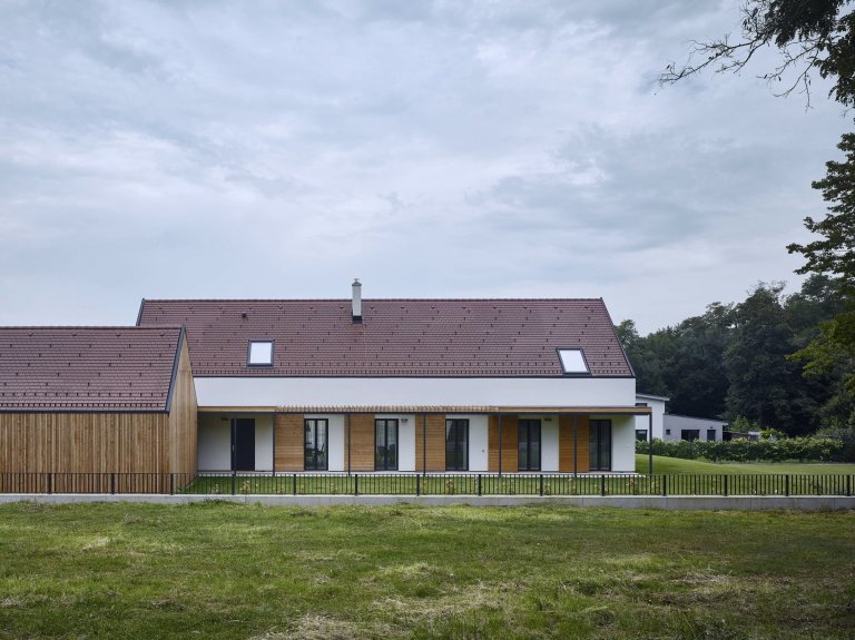 S nelehkou výzvou si zdárně poradilo profesionální sourozenecké duo z ateliéru ARCHITEKTI mikulaj & mikulajová, které je známo svým nadšením pro kreativní práci vyváženou pragmatickým myšlením a racionálním přístupem. Těm se na ploše 320,4 m2 podařilo vytvořit tradiční archetyp domu s moderní tváří. Dokázali tak, že i v 21. století lze na venkově navrhnout rodinný dům, který si uchová to nejlepší z tradice a k tomu získá i něco ze současné architektury včetně moderních technologií šetrných k životnímu prostředí.