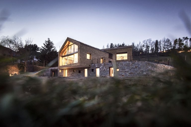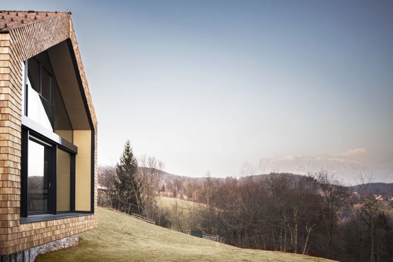 Soukromá vila výstižně pojmenovaná "am Steinbruch" neboli „v lomu“ nacházející se v místě bývalého lomu na kraji obce Oberbozen/Soprabolzano v jižním Tyrolsku nabízí díky své poloze úžasný výhled na horské panorama Dolomit.