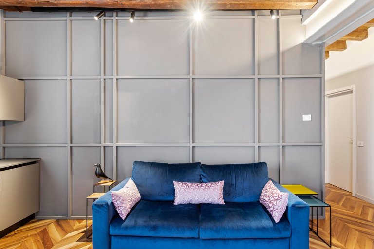 Malý byt v historické budově v centru dostal druhou šanci. Architekt Carlo Cretella z něj vytvořil plně funkční prostor, který překvapuje kombinacemi na první pohled nesourodých prvků. Spojuje to, co by se jiní možná neodvážili spojit, a pyšní se detaily, kterých si všimnete na každém kroku. Výsledkem je svěží a velmi zajímavý eklektický prostor s výrazným charakterem, protkaný zajímavými odkazy.