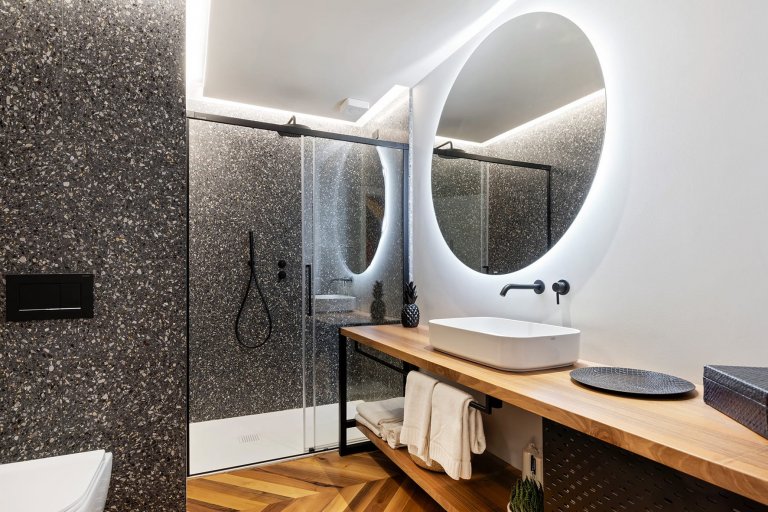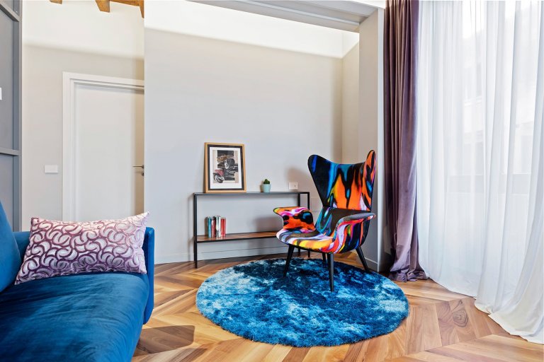 V historické budově z 19. století tak vznikl interiér plný svěžích barev, originálních nápadů a sametově hebkých povrchů. Eklektický styl se zde dostává ke slovu s citem pro eleganci a dokonalou souhru zdánlivě nesourodých prvků. Vzniká tak bydlení, jehož krásu ještě více umocňuje město obrovského kulturního významu.