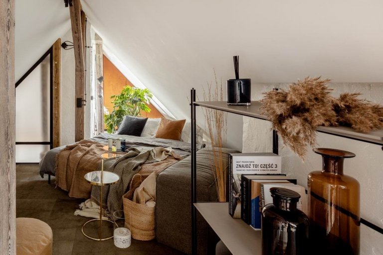 Interiér se nachází v srdci hlavního města, v činžovním domě, který vypadá spíše jako kancelář než běžná obytná budova. Tajemné místo je sice v centru Varšavy, ale daleko od hluku a shonu. Byt je v podkroví a byl velkou výzvou pro architekty. Už na začátku projektu bylo nutné řešit zásadní věci jako povolení od restaurátora památek k provádění nutných prací, absence výtahu a špatný přístup do činžovního domu. Cíle stanovené projektantem byly velmi ambiciózní, ale dosažený výsledek stojí za to.