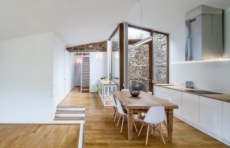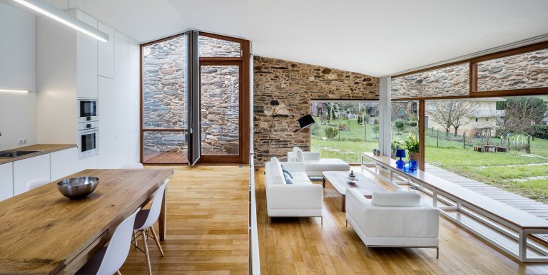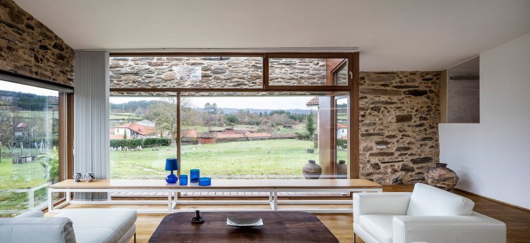 Tento husarský kousek se podařil španělskému architektonickému studiu Cubus Arquitectura. V oblasti Galicie, konkrétně uprostřed vinařské oblasti Ribeira Sacra, objevili starou kamenici a přetvořili ji v rodinný dům. Kamenný sklep dříve nebyl obytný ale sloužil pro ukládání vína, lihovin a masa, ale také jako vhodné místo pro uchování slámy na zimu. Architekti Ortega Vázquez a David Pou van den Bossche zcela přestavěli interiér na třípokojový dům s rozsáhlými terasami a velikým obývacím pokojem s překrásným výhledem do okolní krajiny. Ten ještě umocňují velké prosklené plochy, které jsou z větší otevíratelné, takže příroda přímo prostupuje interiérem.