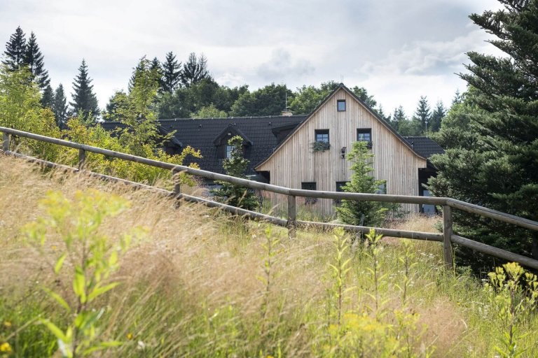 Horská zahrada dokonale doplnila příjemné stavení s tradičními prvky. Nachází se v Jizerských horách a plynule se přelévá do krajiny. S pestrou škálou květin, keřů a stromů je dokonalým prostředím pro trávení chvil v samotné náruči přírody.