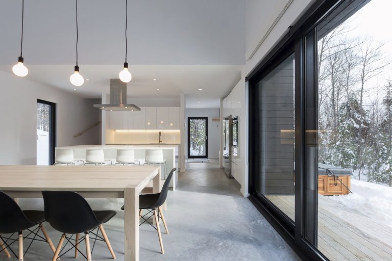 Boreale je okouzlující vila, moderní rezidence, která se nachází v Charlevoix, ve východní oblasti kanadské provincie Quebec. Oblast je známá svými zalesněnými kopci, množstvím sjezdovek a nádherným výhledem. Vila se nachází v srdci lesa, na mírně svažitém pozemku a harmonizuje s všudypřítomnou vegetací. Pojďme nahlédnout jak vypadá uvnitř.