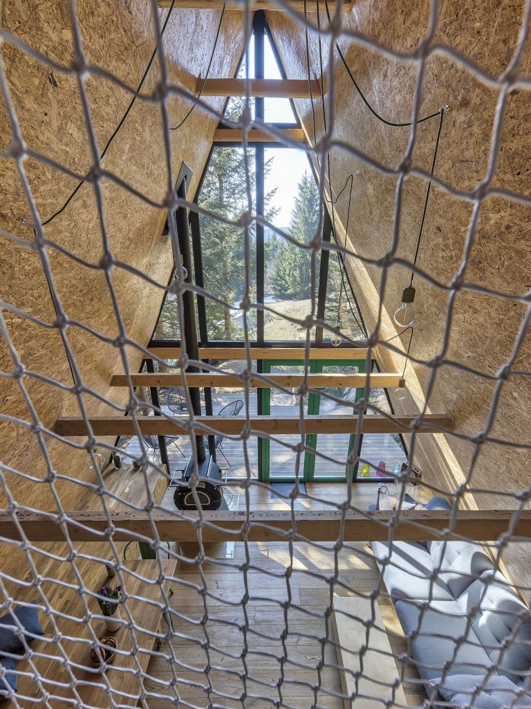 Hezká malá chata postavená na Donovalech v 70. letech 20. století potřebovala renovaci. Aby architekti Jana Štofan Styková s manželem Pavlem Štofanem nepoškodili okolní panenskou přírodu, rozhodli se opustit radikální restrukturalizaci, ale provedli pouze zásadní opravy uvnitř chaty. Klasická A chata ve tvaru trojúhelníku o výměře 56 m2. Majitel si přál její renovaci bez zásadních stavebních úprav.