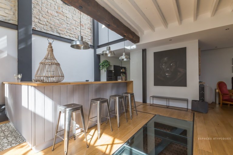 Stodola z roku 1760 se nachází ve městě Villejuif kousek od Paříže. Přístup do ní vede přes nádvoří a ihned po vstupu do velmi originálního bydlení na vás dýchne kromě historie také zvláštní kouzlo, které patří pouze tomuto místu.