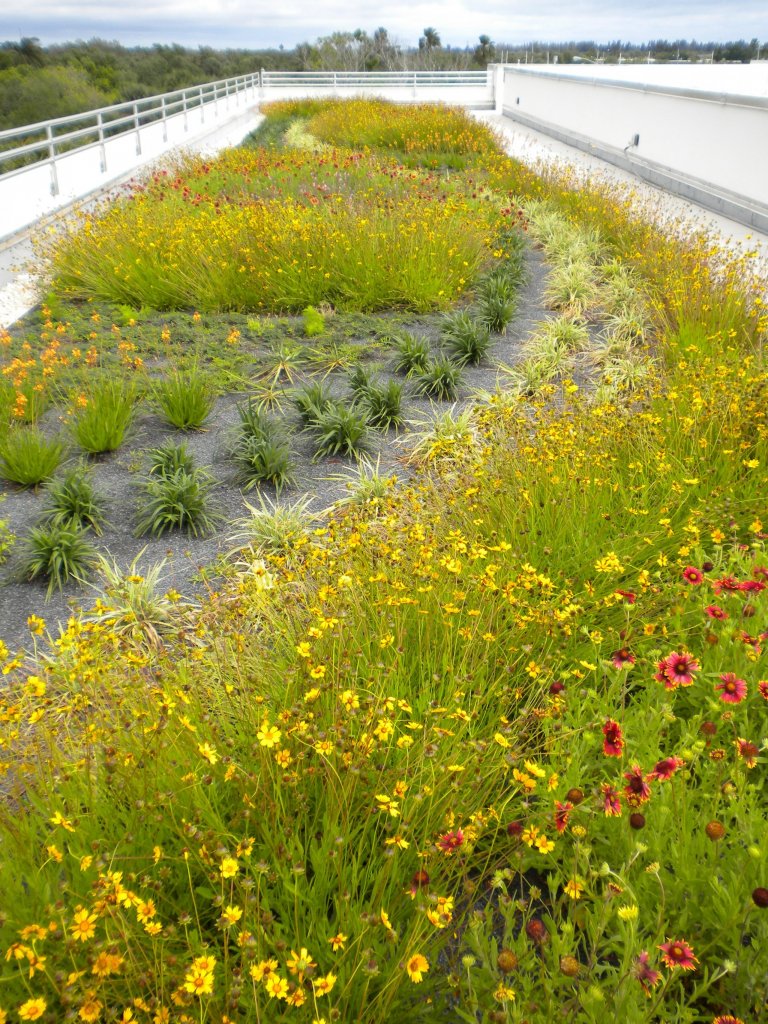 Ještě než dojde k osázení střechy k tomu určenými rostlinami, pokládá se na povrch dobře izolované střechy minerální vata, která působí jako vodní jímač. Na vatu se pak položí docela malá vrstva substrátu, do níž se vysadí vhodné rostliny. Ty pak čerpají vláhu z izolace, která se zde shromažďuje, jakmile zaprší.