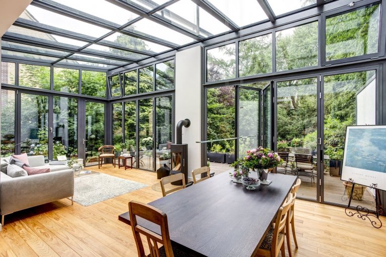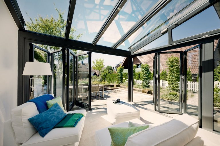 Pokud chcete zimní zahradu používat jen nárazově pro přechodné uchovávání rostlin, nemusíte ji vytápět. Nejlepší tak bude, když takovou zimní zahradu v zimě zavřete a tedy i oddělíte od vytápěného interiéru. V letních měsících ji zase můžete otevřít a vychutnávat si jejího tepla, o které se postarají sluneční paprsky. Jestliže však chcete svou budoucí zimní zahradu pasovat na plnohodnotný obytný prostor, musíte počítat s napojením na vytápěcí systém. Taková celoročně obývaná zimní zahrada by měla být v ideálním případě navržena tak, aby přinesla tolik energie, kolik sama spotřebuje. Tento typ zimní zahrady propojte se zbytkem interiéru nejlépe pomocí skleněné stěny.