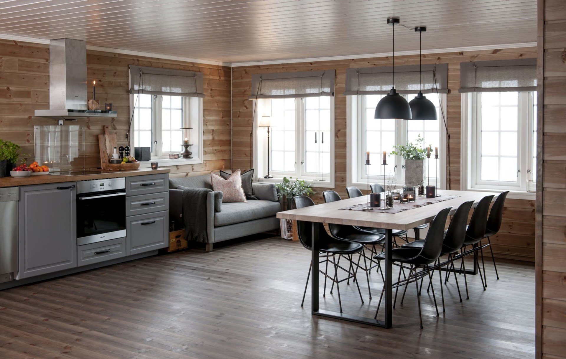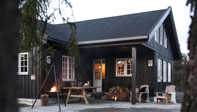 Velkorysá dřevostavba se čtyřmi ložnicemi, velkou kuchyní, jídelnou a dalšími místnostmi byla v poměrně dobrém stavu, přesto si však říkala o rekonstrukci. K vytoužené proměně byla pozvána Christine Fikseaunet, která má s rekonstrukcemi venkovských stavení bohaté zkušenosti. V prvé řadě tak bylo třeba opravit poškozenou střechu a oživit stávající fasádu. Vnější stěny dřevostavby dostaly ochranný nátěr v černé barvě. Proto, aby dům nepůsobil tak ponuře, rozsvítily ho okenní a dveřní rámy v kontrastní bílé. Významně se proměnil také interiér. Vstupní dveře našly své nové místo a na úkor jednoho pokoje se zvětšila chodba, ve které doposud nebylo téměř k hnutí. S vytříbeným vkusem Christine Fiksaunet vznikalo krok po kroku docela nové bydlení odrážející lásku majitelů k přírodě i sportu.
