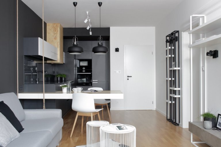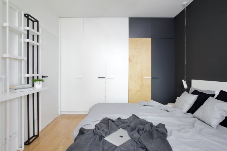 I přes vcelku dost tmavých ploch byt nepůsobí temně, naopak, dostal pánský a jednotný charakter…