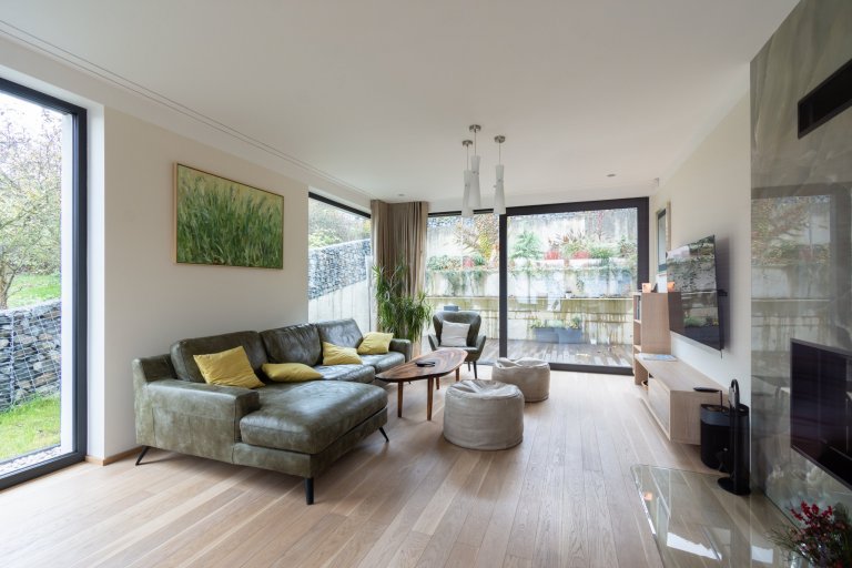 Samotná stavba je řešena jako bytová jednotka charakteru 6+kk (obsahuje klasickou dispozici 5+kk + samostatnou jednotku, která bude mít vlastní vstup a hygienické zázemí). Zahrada je pozicí domu rozdělena na část soukromou pro obyvatele domu a soukromou pro obyvatele jednotky.