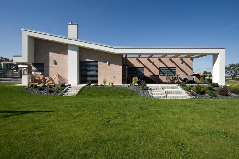 Rodinný dům se nachází v malé obci nedaleko Olomouce. Samotný pozemek má krásný výhled na místní dominantu – Svatý kopeček – kopec s kostelem na svém vrcholu. Pro návrh domu byl tento výhled zásadní. Pozemek má severo-jižní orientaci a ponechává svou jižní část pro zahradu.