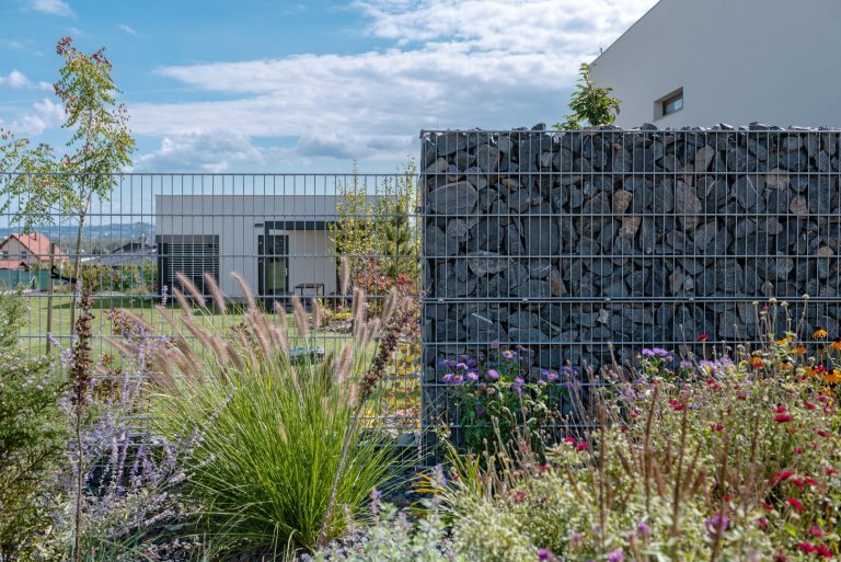 Během realizace jsme se museli poprat s terénními komplikacemi. Pro bezpečné usazení a pohyb brány bylo nutné upravit na rozdílnou úroveň před plotem a v zahradě. Vyrovnat jej a posléze ještě doladit i opticky (vpravo od vjezdu jsme použili nižší gabiony než na opačné straně).