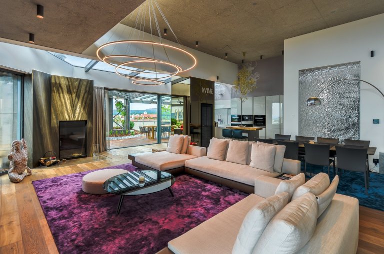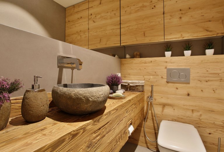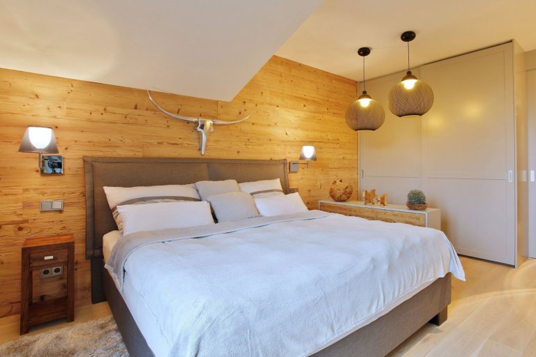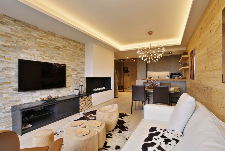 V luxusním apartmá jednoduché linie neměly být omezujícím prvkem naopak jejich přítomnost měla zdůraznit vysoký standard. Apartmán svou stylovou čistotou měl také dát prostor pro vyznění krásy okolní přírody, která do něj vstupovala velkými prosklenými plochami. Dokonalé bydlení v horském stylu ...